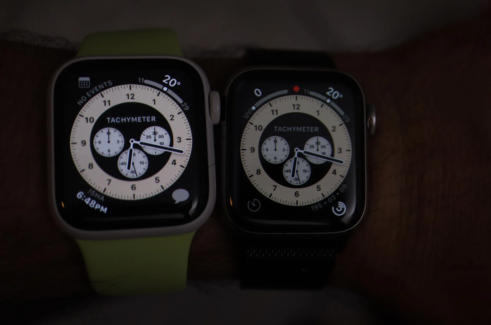 When you compare the Series 5 to any modern Apple Watch of the same size, the size is very similar, and almost unnoticeable to the naked eye. It’s when you get to full-screen watch faces that you notice the bigger bezels. Not a huge deal if you ask me, especially if you use darker watch faces.