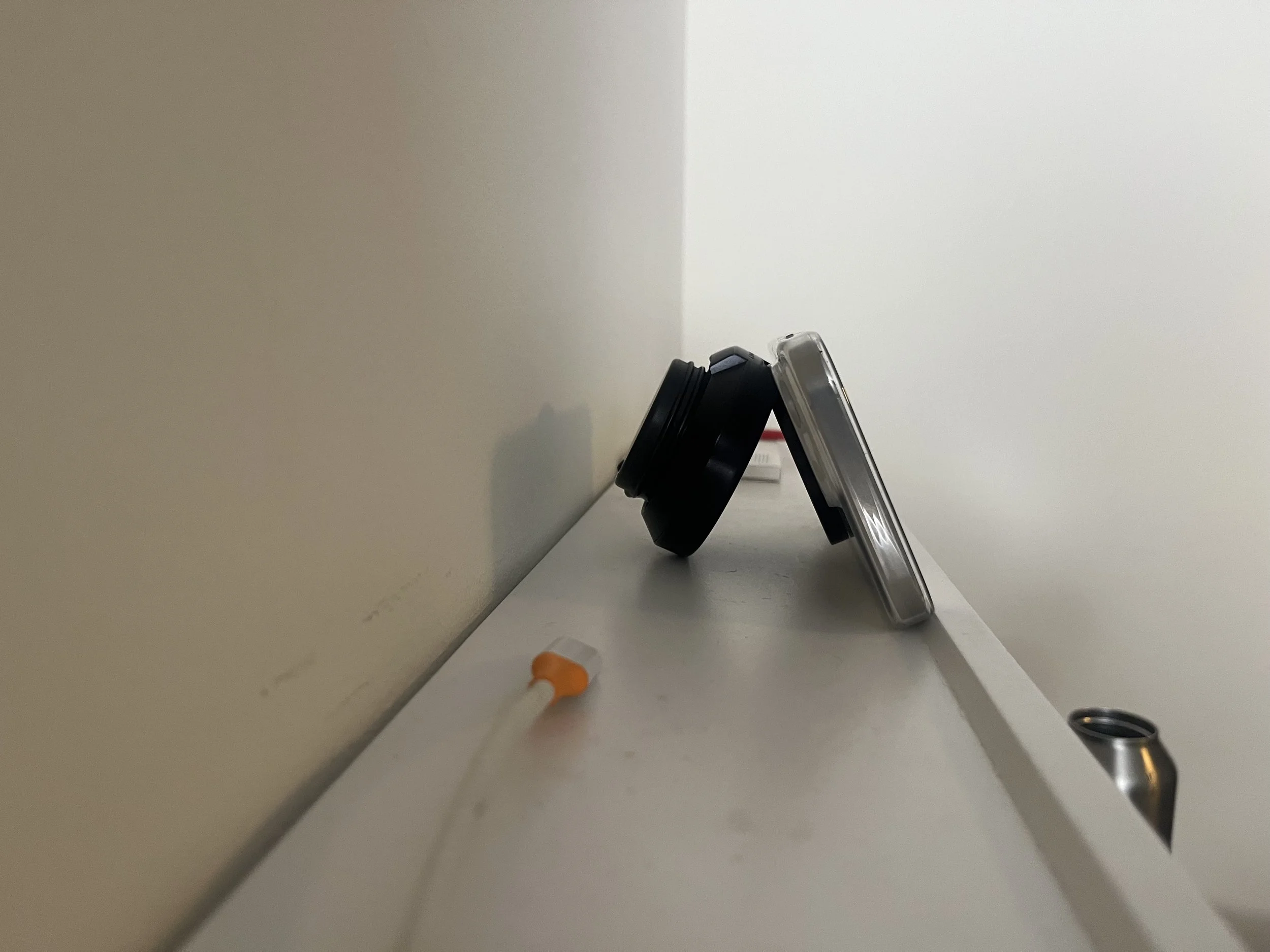 I bought Moment’s wall mount, which has a significantly stronger magnet than the standard MagSafe magnet. The wall mount diameter is bigger than the MagSafe charger, so it does not fit in the car mount cut out by itself. I would need to use the 3M backing of the wall mount and stick it to a MagSafe puck, which would fit directly into the car mount. I didn’t want to waste $30 on a MagSafe puck just to glue another piece to it, so I ended up buying a cheap MagSafe charger on eBay for $15, cut the wire off, and now I had my custom, modular, MagSafe mount with a stronger magnet.